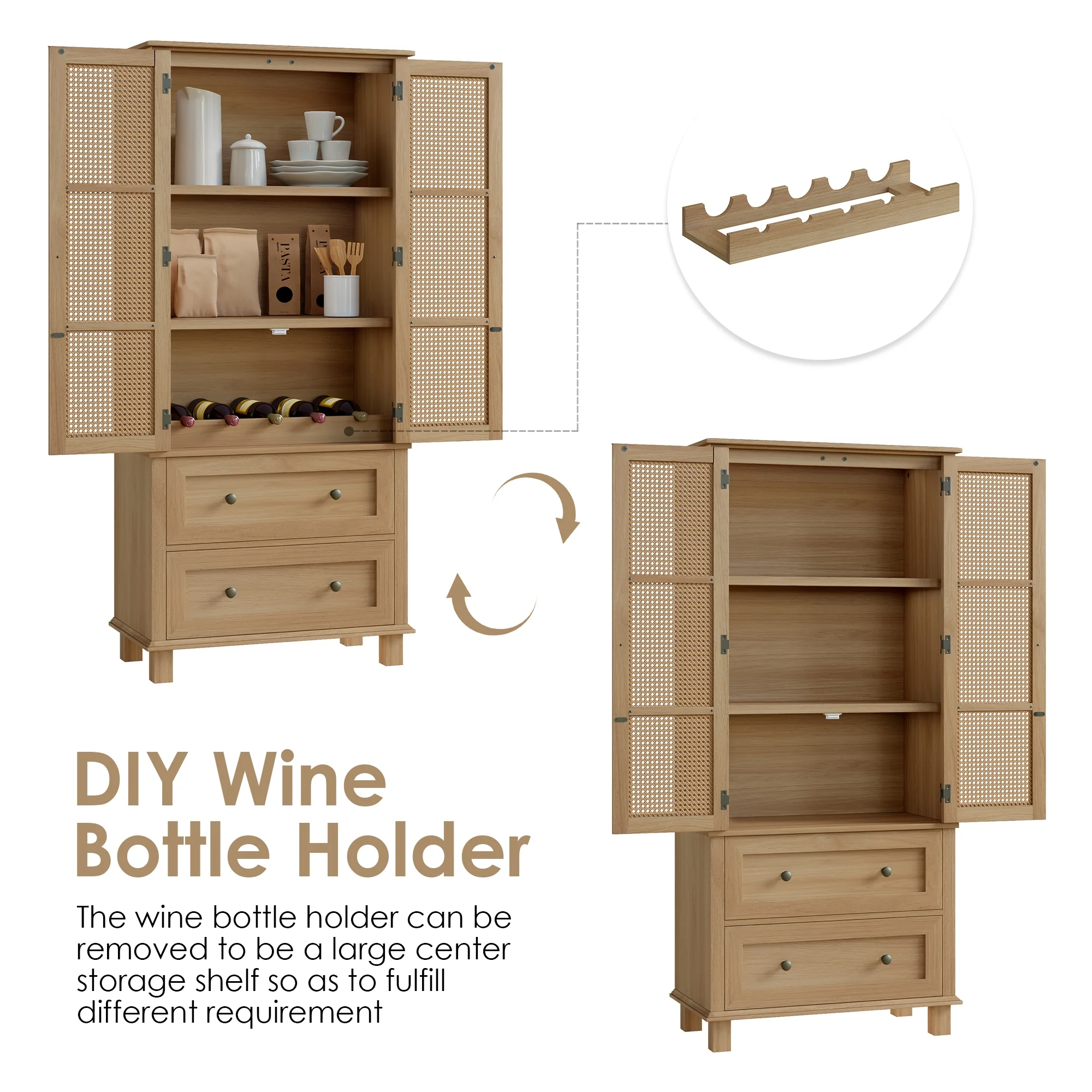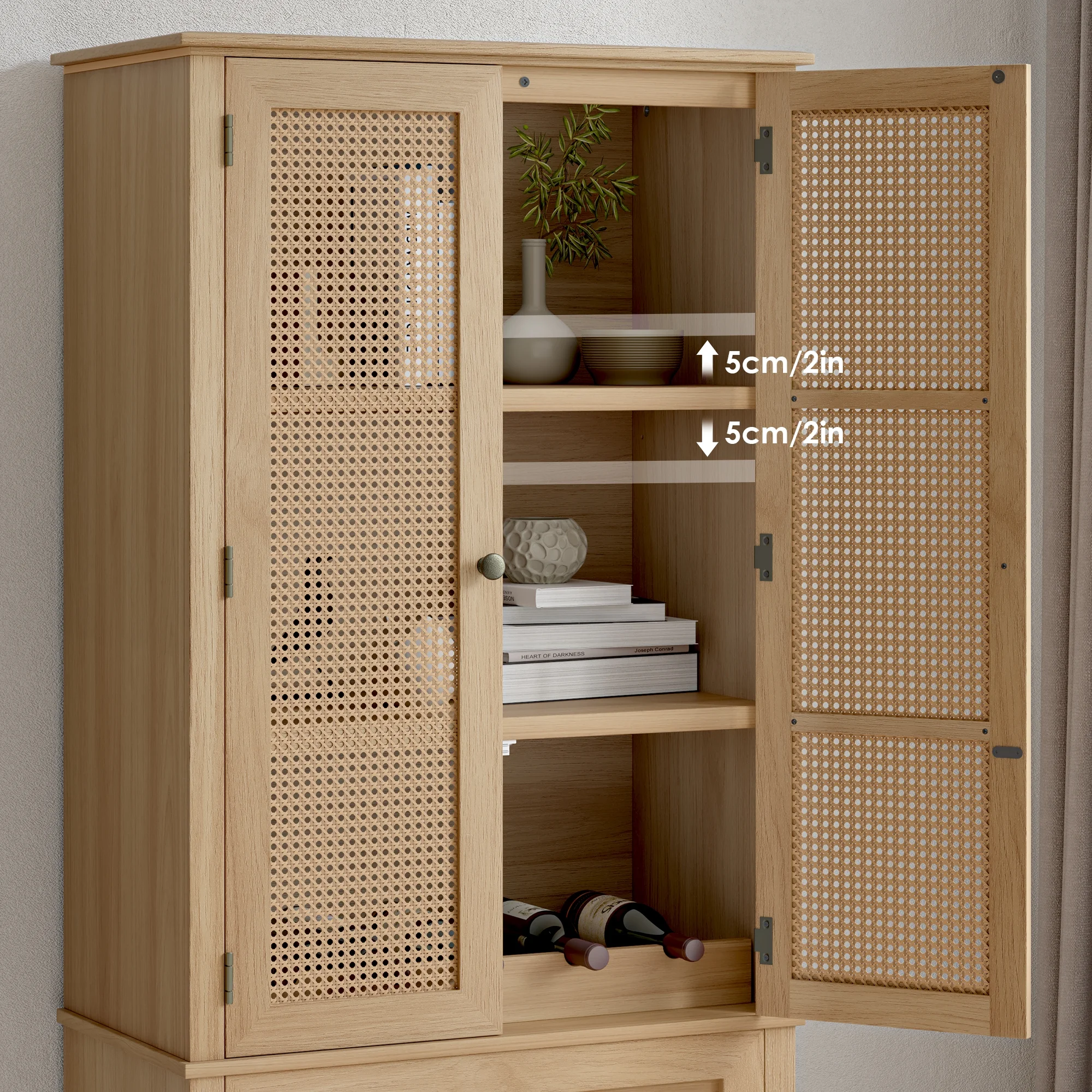 Homfa Rattan Cabinet with Doors, Tall Storage Cabinet with 2 Drawers, Narrow Accent Versatile Cabinet for Living Room, Oak